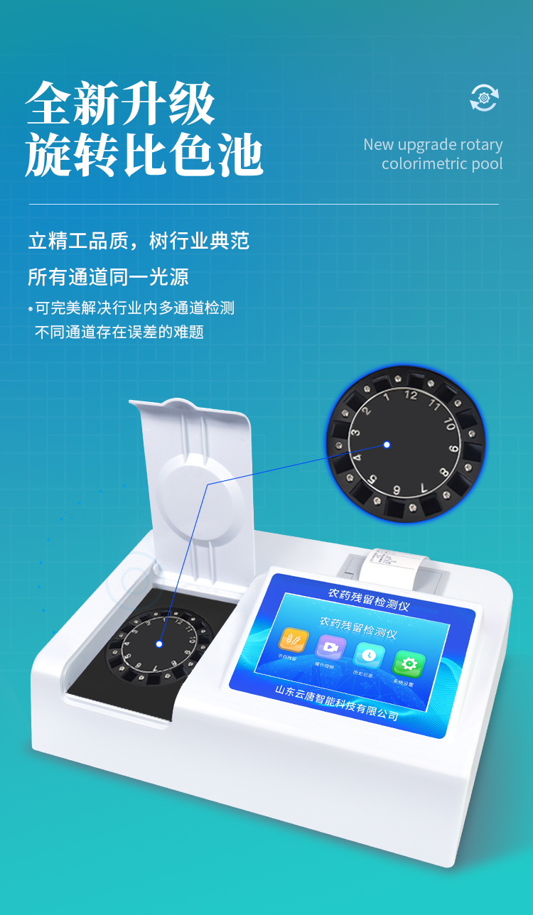 檢測標準:依據國家標準方法(GB/T5009.199-2003)以及世界衛(wèi)生組織WHO、世界糧農組織FAO殘留農藥檢測標準、世界環(huán)境保護局EPA參照攝入量等要求來設計。采用酶抑制率比色法對水果、蔬菜等農林產品中有機磷和氨基甲酸酯類農藥含量進行快速準確的檢測。