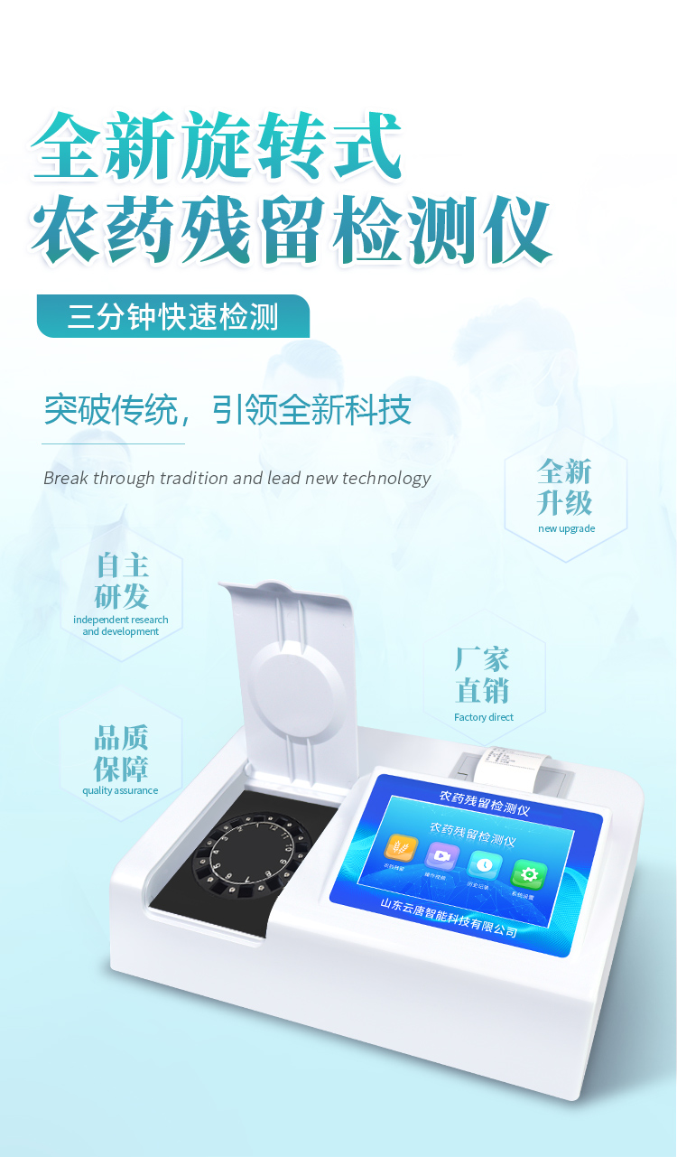 廣泛應用于主要用于蔬菜、水果、茶葉、糧食、農副產品等食品中有機磷和氨基甲酸酯類農藥殘留的快速檢測;此外還可用于果蔬茶生產基地和農貿批發(fā)銷售市場現場檢測,餐館、學校、食堂、家庭果蔬加工前的安全速測等。