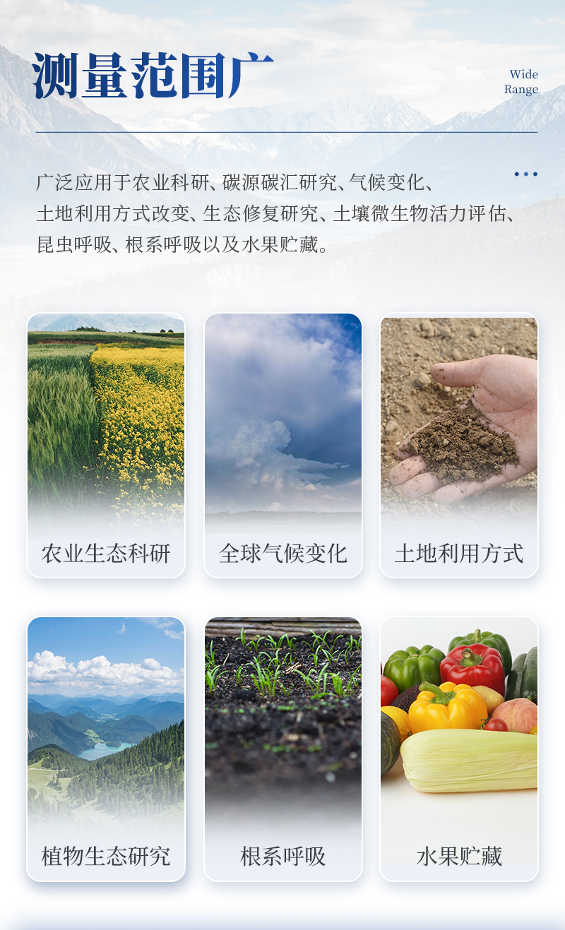土壤呼吸是土壤生態(tài)系統(tǒng)碳素循環(huán)的一個(gè)重要過(guò)程,是土壤碳素同化異化平衡作用的結(jié)果,也是碳素由陸地生態(tài)系統(tǒng)返回大氣的主要途徑,是土壤中生命活動(dòng)的表征,準(zhǔn)確測(cè)定其釋放量是評(píng)價(jià)生態(tài)系統(tǒng)中生物學(xué)過(guò)程的關(guān)鍵;通過(guò)對(duì)土壤呼吸及其相關(guān)參數(shù)的監(jiān)測(cè),可估測(cè)根系和土壤微生物對(duì)氣候變化的響應(yīng)。土壤CO2通量在時(shí)間和空間上受多種復(fù)雜物理和生物過(guò)程影響,長(zhǎng)期、連續(xù)、準(zhǔn)確的測(cè)量土壤碳通量,對(duì)陸地生態(tài)系統(tǒng)碳通量研究具有重要的意義。土壤呼吸測(cè)定儀可以同時(shí)顯示呼吸室內(nèi)部的CO2濃度、溫度和濕度變化以及外部光合有效輻射強(qiáng)度。廣泛應(yīng)用于農(nóng)業(yè)生態(tài)科研、碳源碳匯研究、全球氣候變化、土地利用方式改變、生態(tài)修復(fù)研究、土壤微生物活力評(píng)估、植物生態(tài)研究、昆蟲(chóng)呼吸、根系呼吸以及水果貯藏。