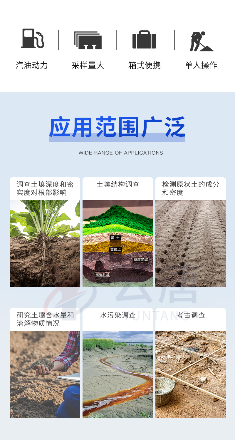 動力(汽油)土壤采樣器(汽油動力土鉆)土壤采樣器是本廠汲取廣大客戶意見、經(jīng)多方用戶需求和市場調(diào)研,開發(fā)出的一款動力(汽油)土壤采樣器。儀器采用汽油機驅(qū)動、以大幅減免土壤取樣人員的勞動力和快速、取樣簡便而著稱。