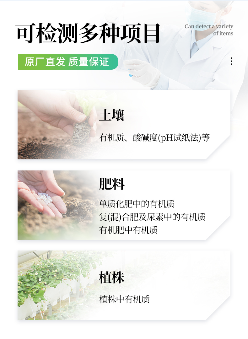 ★可檢測土壤及化肥、有機肥、植株中的有機質(zhì)含量,土壤酸堿度,含鹽量(擴展)。