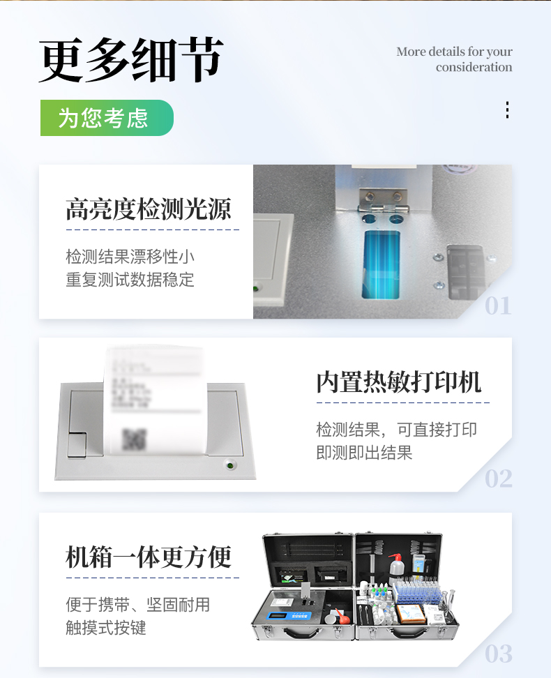 ★《機箱/藥劑一體式鋁合金機箱》設(shè)計,便于攜帶、堅固耐用,配套成品藥劑。