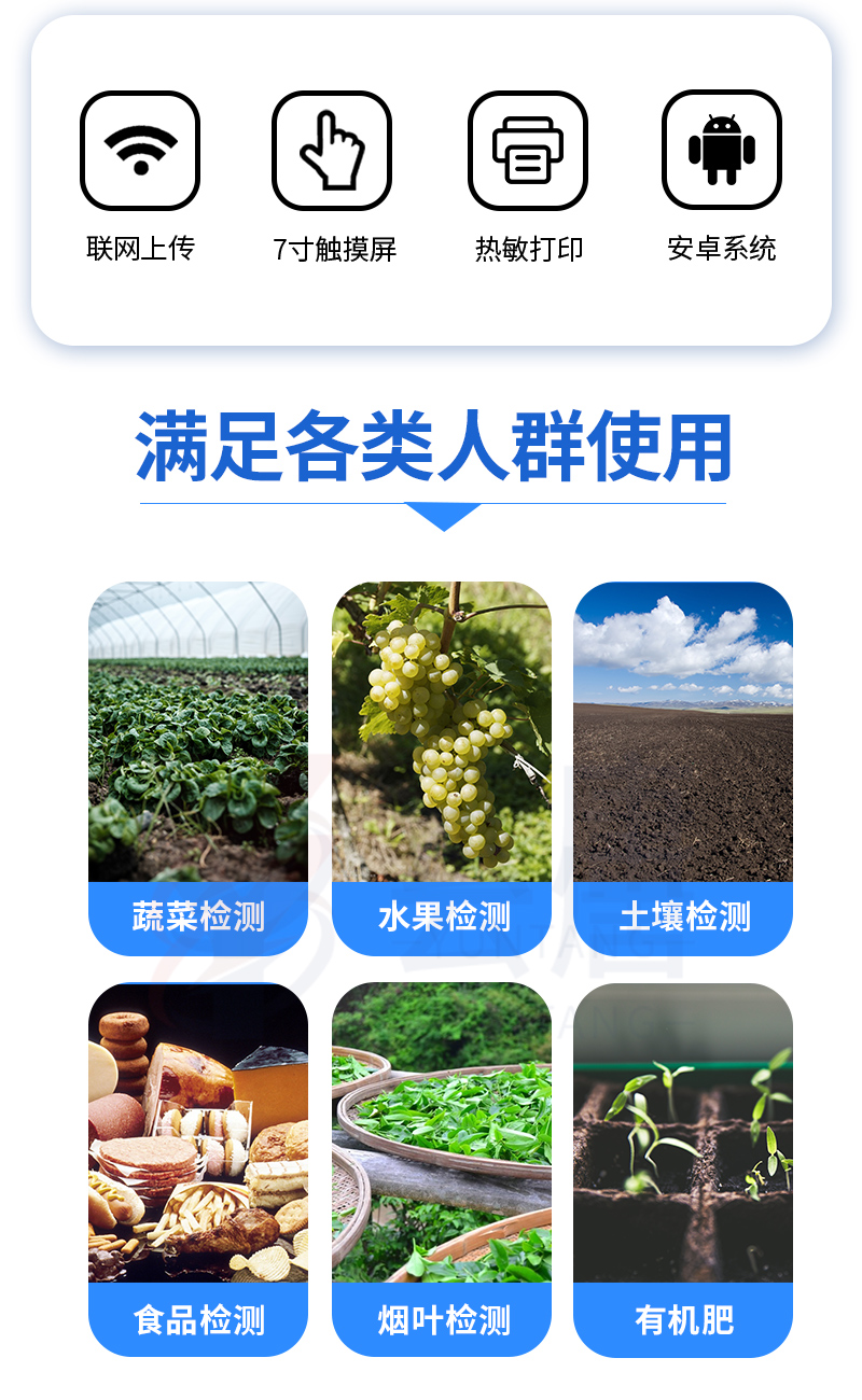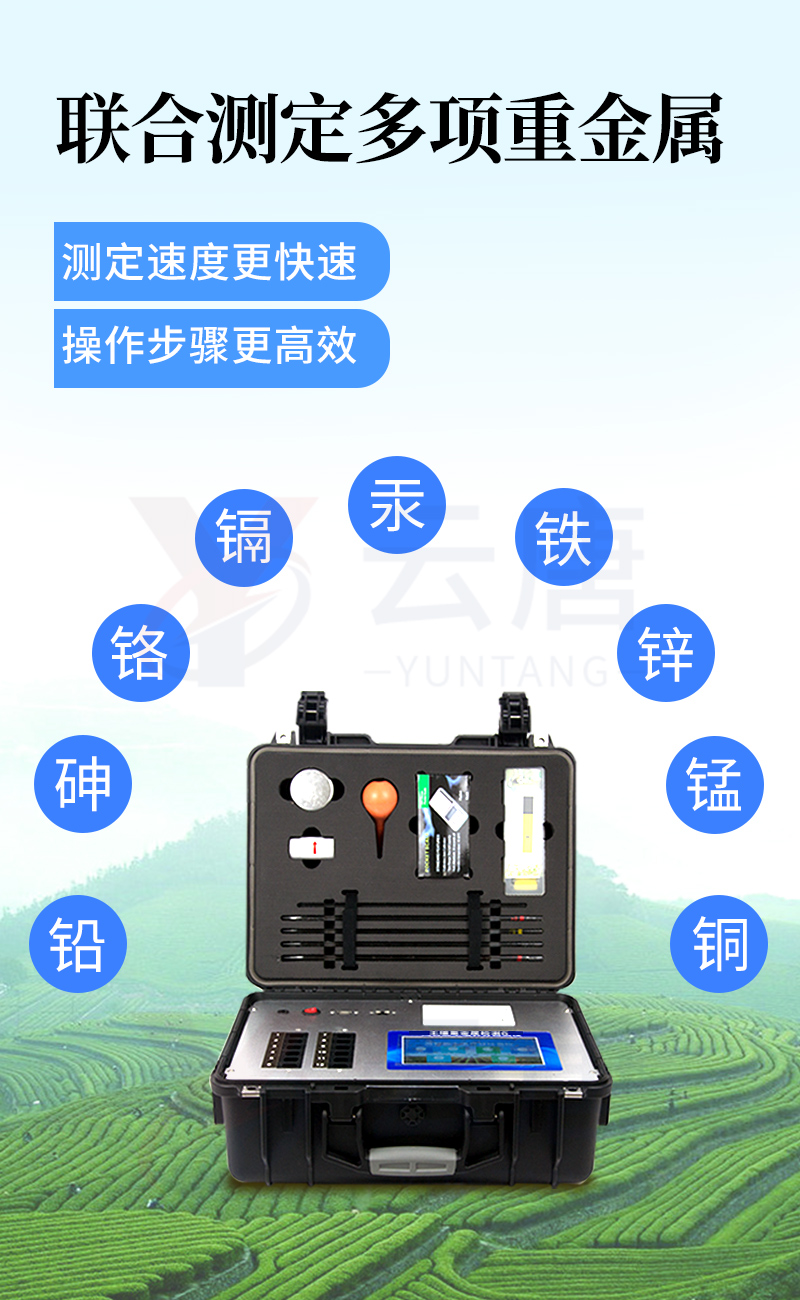 可對土壤、肥料、作物、蔬菜、水果、水質(zhì)、食品等樣品中的砷、鉛、鎘、鉻、汞、鐵、鋁、鋅、錳、銅等進(jìn)行快速聯(lián)合測定。